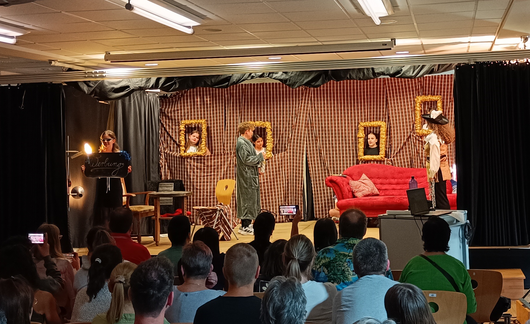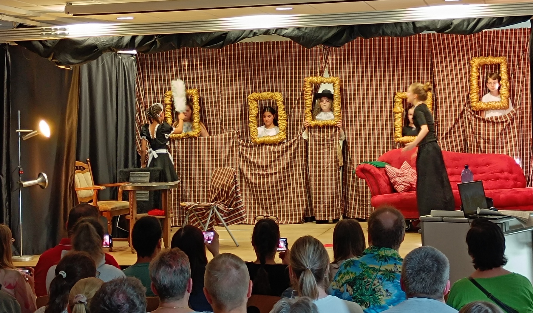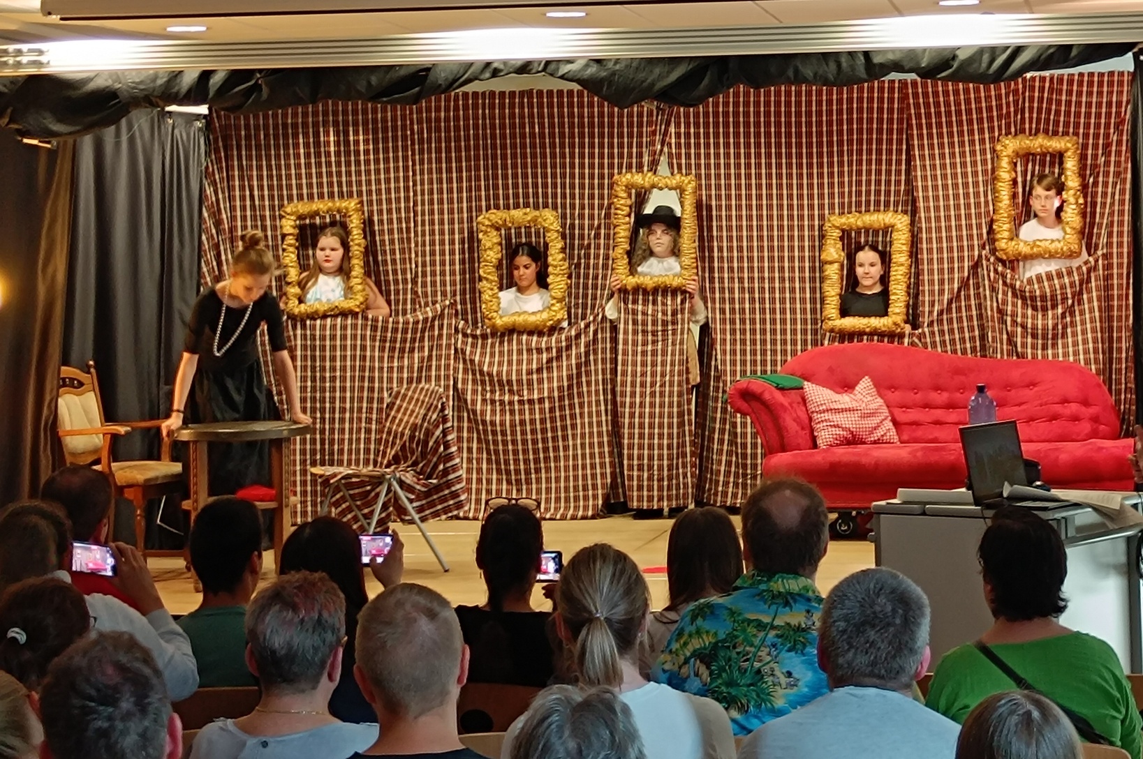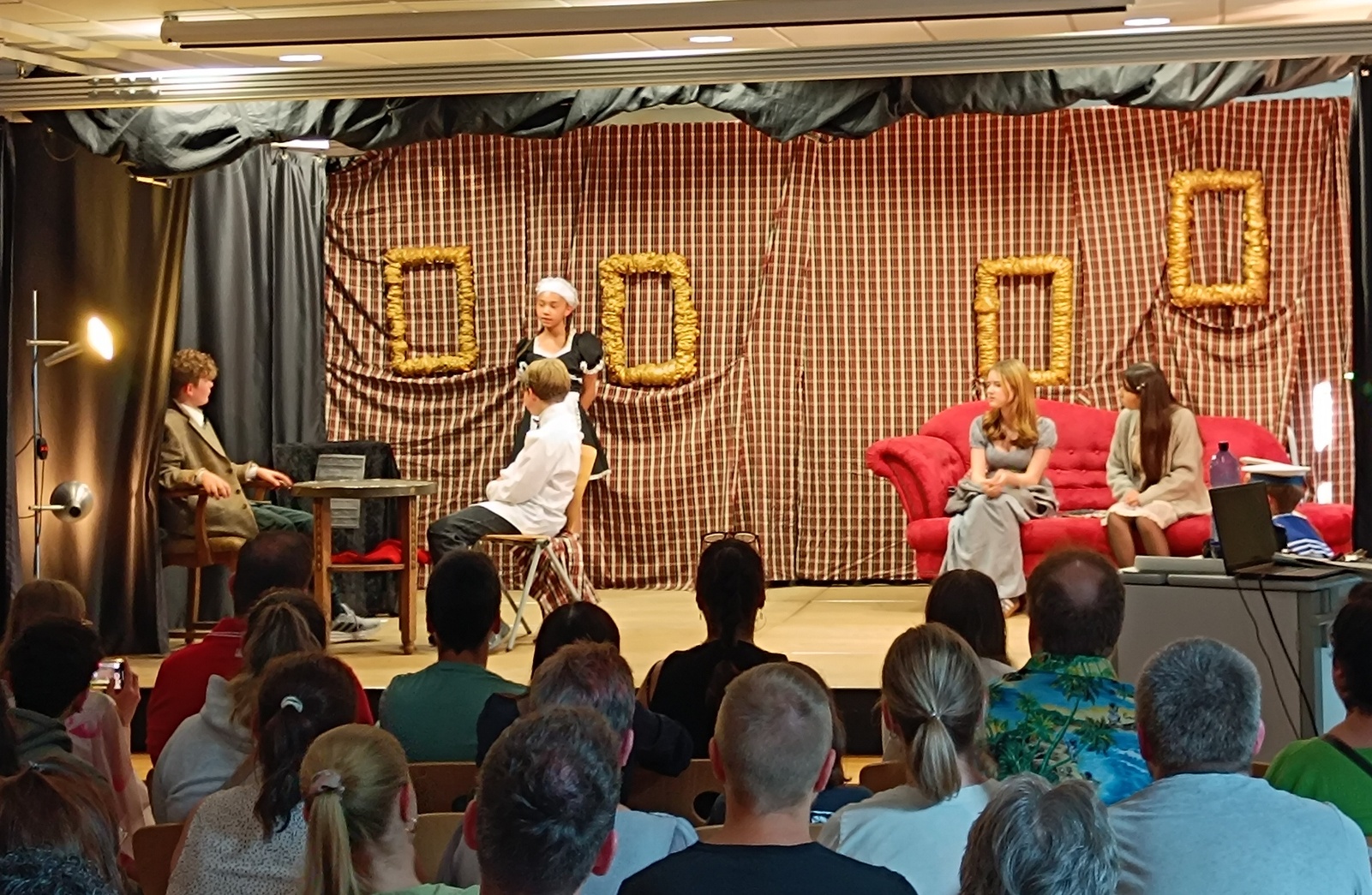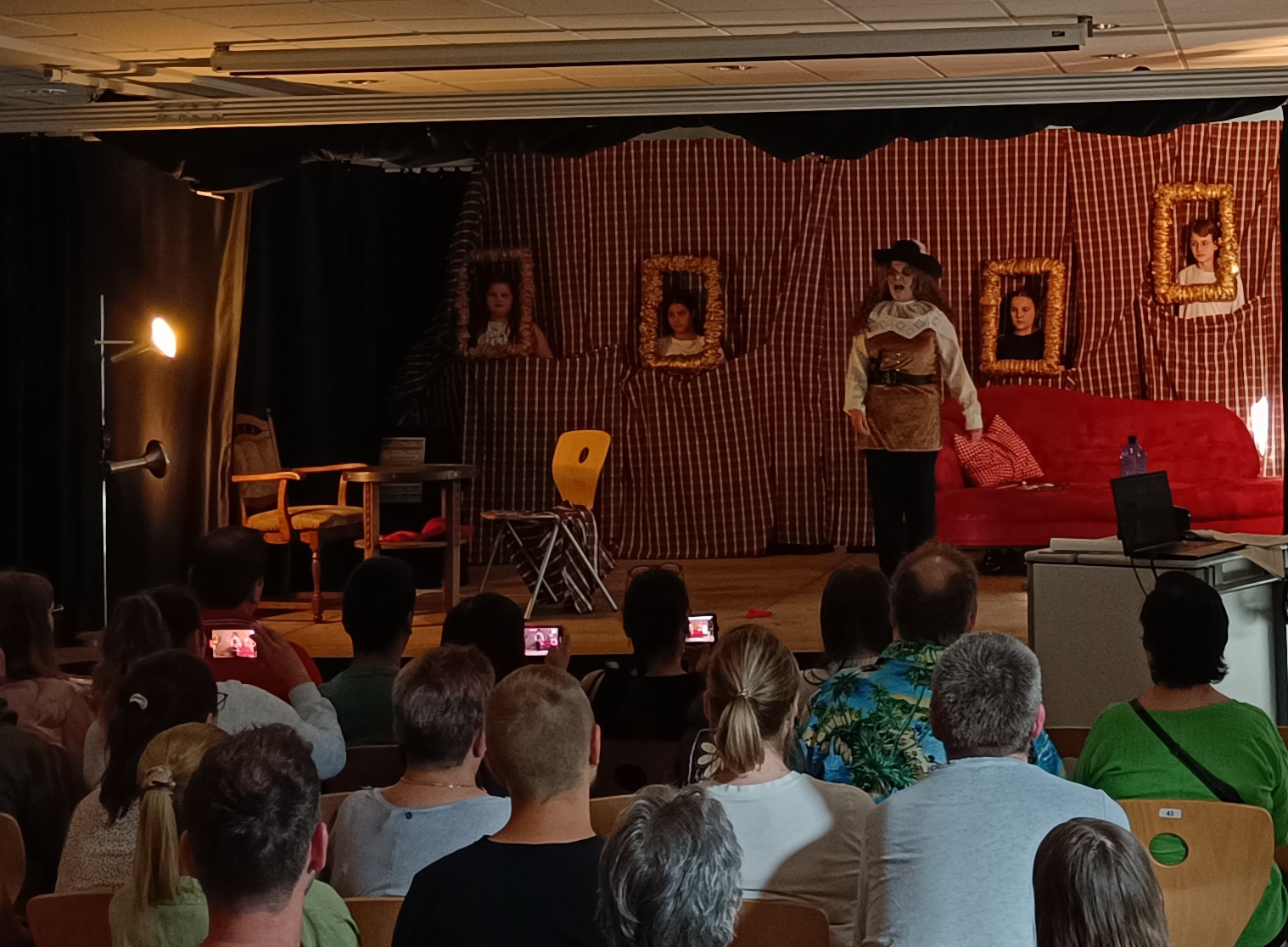 Für alle, die das Theaterstück verpasst haben, sind hier ein paar Fotos von der ersten Aufführung. Neben der Haupthandlung rund um die Familie Otis und das blaublütige Gespenst trugen auch ein paar originelle Werbepausen sowie ein fast märchenhaftes Stück im Stück zur insgesamt großartigen Unterhaltung bei.